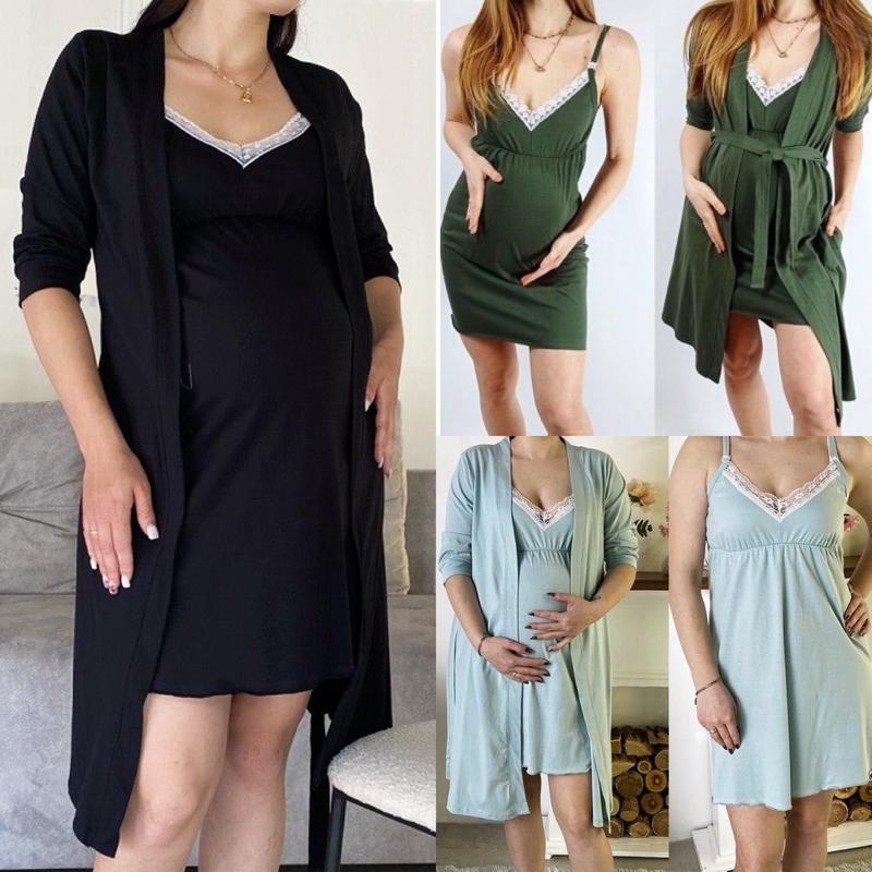 Комплект для вагітних халат і сорочка з мереживом 44-58