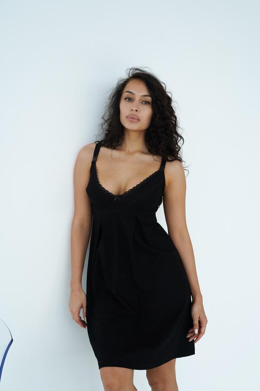 • нічна сорочка на еластичних бретелях з бавовняного трикотажу для вагітних та годуючих матусь • спеціальний крій чашок забезпечує максимальну підтримку грудей під час сну, відпочинку та годування малюка • мереживне оздоблення підкреслює лінію декольте Склад: 95% бавовна, 5% еластан Розмір: XS-XXL Колір: чорний 24182