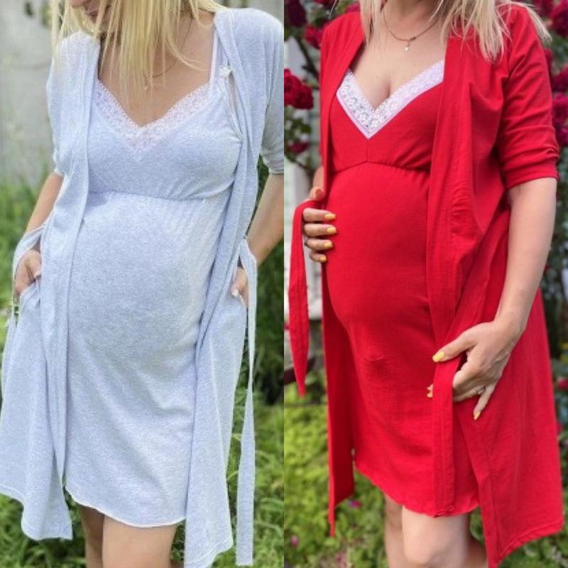 Комплект для вагітних халат і сорочка з мереживом 44-58