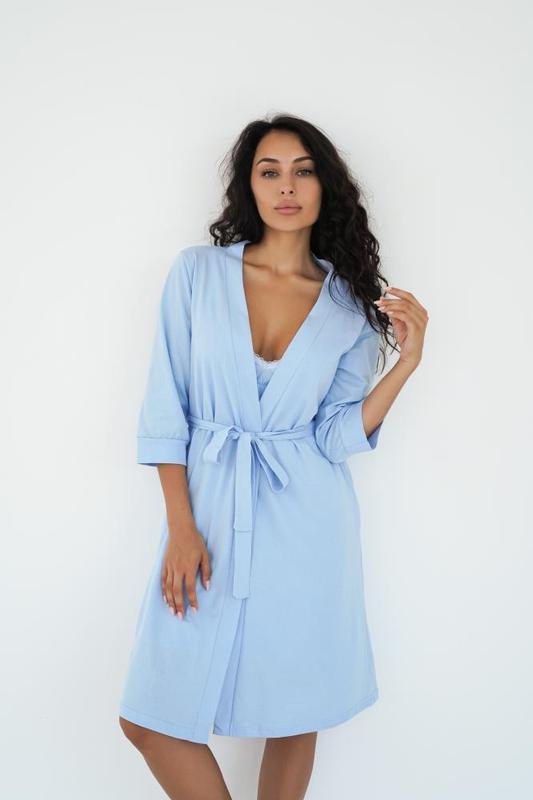 Комплект халат + нічна сорочка для вагітних та годування, блакитний