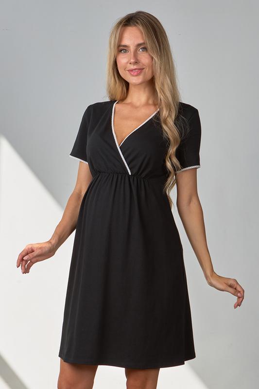 Базовая ночная рубашка для беременных и кормящих из хлопкового трикотажа. Силуэт: полуоблегающий лиф и свободная юбка. Секрет кормления: запаях на груди. Отделка: ажурная резиночка по горловине и низу рукавов. Ткань: хлопковый трикотаж. Растяжимость ткани: около 18-23 %. Цвет: черный. На фотографии: размер модели S, объем груди 89 см, бедер 95 см, рост 175 см. Ориентировочные измерения готового изделия: S: Длина по спинке 90 см, Длина рукава 18 см, Грудь 86 см, Талия 96 см, Бедра 111 см. M: Длина по спинке 91 см, Длина рукава 18,3 см, Грудь 90 см, Талия 100 см, Бедра 116 см. L: Длина по спинке 91 см, Длина рукава 18,5 см, Грудь 94 см, Талия 105 см, Бедра 120 см. ХL: Длина по спинке 92 см, Длина рукава 18,6 см, Грудь 98 см, Талия 110 см, Бедра 125 см. Усадка после первой стирки по длине изделия - 1 см. Материал: 95% Cotton, 5% Elastane.