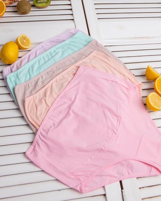 Набір яскравих бавовняних трусиків для вагітних. В комплекті 5 штук різних кольорів. ЗАМІРИ (довжина гумки / висота трусів / бічний шов): M(34/38/20); L(36/38/20); XL(37/41/20) Розміри: M, L Виробник: Туреччина Склад: 95% бавовна, 5% еластан