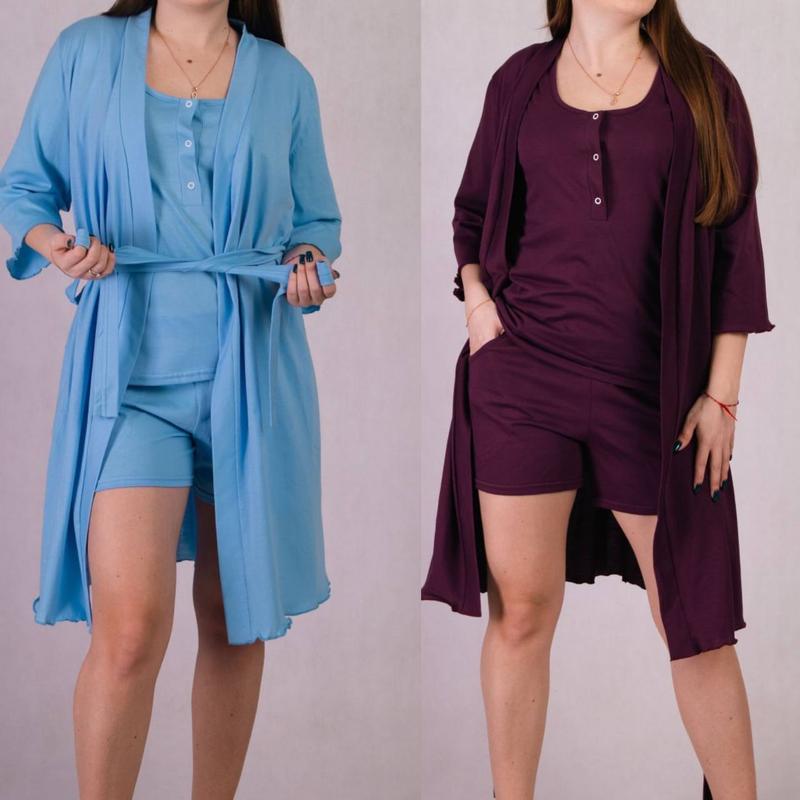 Жіночий комплект 3-ка халат, шорти, майка люкс