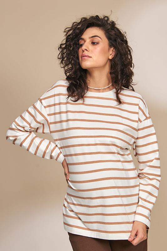 Жіночий лонгслів для вагітних та годування nikita молочний у бежеву смужку xl