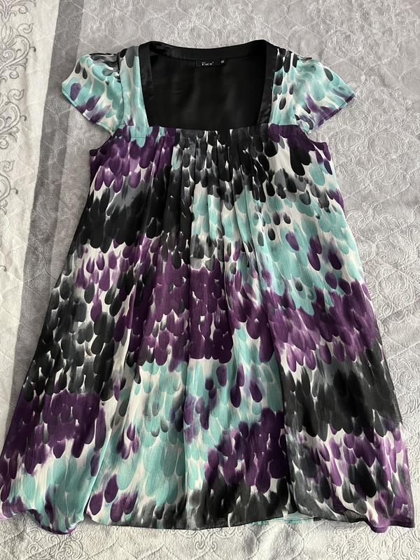 Состояние очень хорошее. Свободного пошива от груди. Замеры: длина- 80см, ПОГ-48см. Ткань-шифон, есть подкладка- не просвечивается. Не жаркое, на теплую и жаркую погоду.
