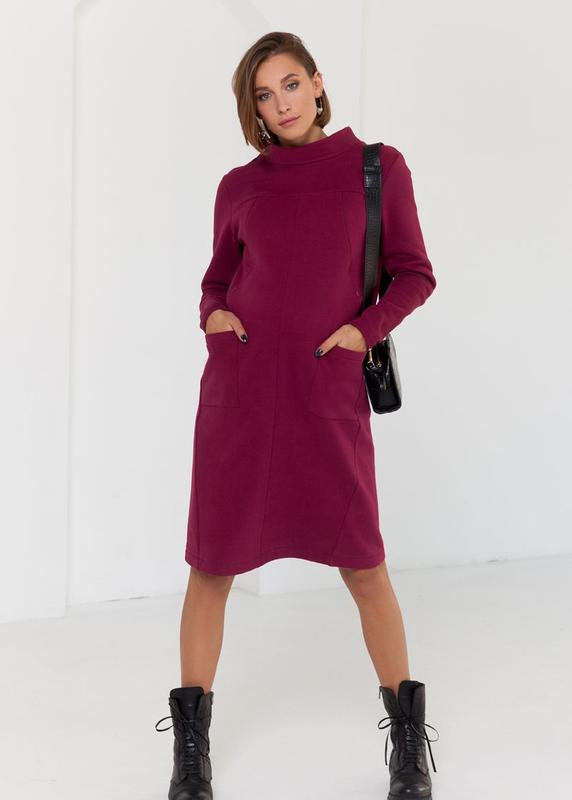 Трендовое платье для беременных и кормящих из теплого трикотажа с начесом длиной миди. Силует: oversize. Секрет кормления: потайные молнии в нагрудных рельефах. Ткань: трикотаж трехнитка с начесом из изнанки и с бархатистым финишным покрытием "peach-touch" с лицевой стороны. Карманы: накладные. Длина по спинке в размере М: 95,5 см. Длина рукава: 60,8 см. Цвет: вишневый. На фотографии: размер на модели S, объем груди 90 см, бедер 97 см, рост 176 см. СОСТАВ: 85% Cotton, 15% Polyester.