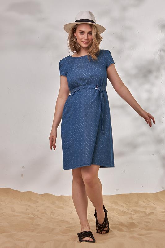 Джинсова сукня для вагітних та годуючих. Силует: А-подібний силует з напівоблягаючим верхом і вільним низом, зі знімним поясом. Секрет годування: потаємні блискавки у нагрудних рельєфах. Тканина: тонкий бавовняний джинс. Колір: джинсово-синій з принтом якірці. На фотографії: розмір на моделі М, об'єм грудей 96 см, стегон 101 см, зріст 171 см. Розмір: XS, S, M, L, XL Орієнтовні вимірювання готового виробу: ХS: Довжина по спинці 87,3 см, Довжина рукава 14 см, Груди 94,2 см, Талія 103,8 см, Стегна 108,6 см. S: Довжина по спинці 88,3 см, Довжина рукава 13,9 см, Груди 98,2 см, Талія 108,2 см, Стегна 113,2 см. M: Довжина по спинці 89,2 см, Довжина рукава 13,7 см, Груди 103 см, Талія 113,6 см, Стегна 119,2 см. L: Довжина по спинці 90,2 см, Довжина рукава 13,6 см, Груди 108 см, Талія 119 см, Стегна 125,2 см. ХL: Довжина по спинці 91,2 см, Довжина рукава 13,5 см, Груди 113,2 см, Талія 125 см, Стегна 131,8 см. Матеріал: 100% Cotton.