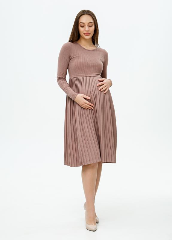 Ця сукня: - верх виготовлений з високоякісного трикотажу в рубчик, який приємний на дотик; - спідниця в плісування виготовлена з щільної костюмної тканини; - завдяки оригінальному та вільному крію, вона підійде на будь-якому терміні вагітності; - зі зручним секретиком для годування; - зі класичним круглим вирізом на шиї; - зможете її носити після вагітності та годування. Розміри: S, M, L, XL, 2XL Розмірна сітка: 42 (S) розмір на об'єм грудей 84-88 см, на об'єм стегон 92-96 см; 44 (M) розмір на об'єм грудей 88-92 см, на об'єм стегон 96-100 см; 46 (L) розмір на об'єм грудей 92-96 см, на об'єм стегон 100-104 см; 48 (XL) розмір на об'єм грудей 96-100 см, на об'єм стегон 104-108 см; 50(XXL) розмір на об'єм грудей 100-104 см, на об'єм стегон 108-112 см. Склад основної тканини: 62% поліестер; 33% віскоза; 5% спандекс