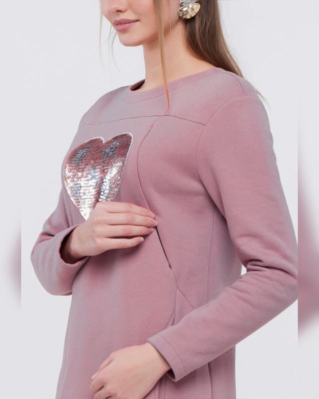 Сукня плотний трикотаж з начесом для майбутньої матусі, та годування. ТМ Yula mama Тепленьке та комфортне. Розмір М. Плечі 47 Напів обхват грудей 51 Напів обхват бедор 53 Довжина 92
