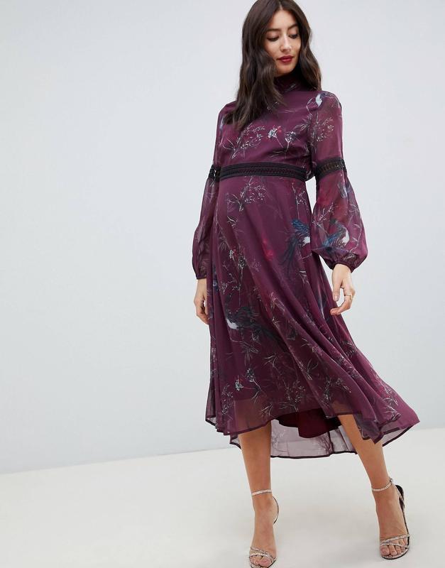 Платье миди с длинными рукавами и Hope & Ivy Maternity с принтом птиц и отделкой крючком Uk 8 ПОГ 43 и вытачки Пот 38 Длина 114/124 Все вещи новые, но срезанные бирки ✅ Продаем аутлет ASOS (бирки вырезаны – такова политика сайта). ❗️Товар НЕ имеет запаха секонд-хенду ❗️