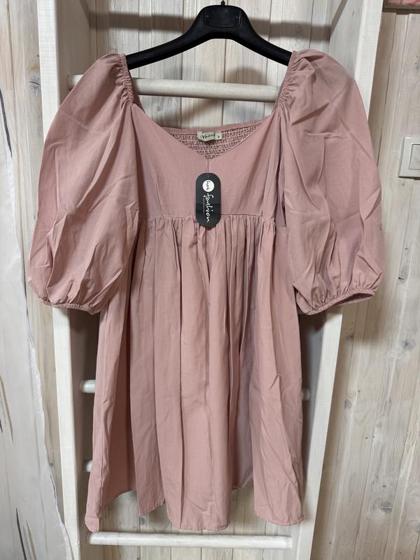 Коктейльне плаття нове, з етикеткою ніжно рожевого кольору (пудра) в розмірі S, але підійде і на М. Довжина 85 см. Має підкладку. На рукавах - резиночка.