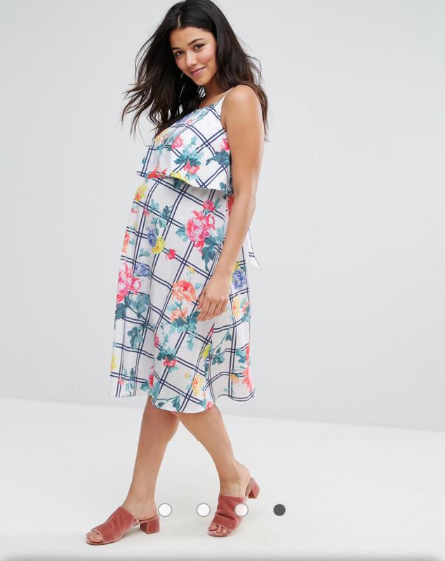 Нове, паперова бірка зрізана Плаття міді з квітковим принтом і кліткою ASOS maternity Nursing Маст хев в гардеробі майбутніх мам. Функціональне плаття, яке можна носити не тільки під час вагітності, але і після. Талія на гумці. Під топом розрізи для годування. Розмір 8/S-M