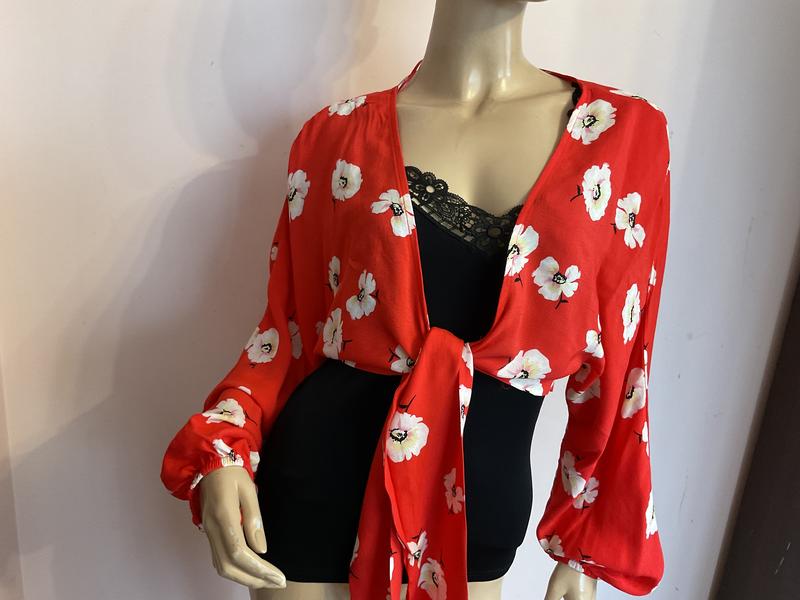 Гарна якісна та яскрава. Можна носити як на вихід так і на кожен день. Рукав- летюча миша - широкий, на гумці. Завязуеться. Заміри в грудях 50 см низ 40 см довжина 42 см рукав від горловини 71 см по окружності руки 33 см 6:10:24