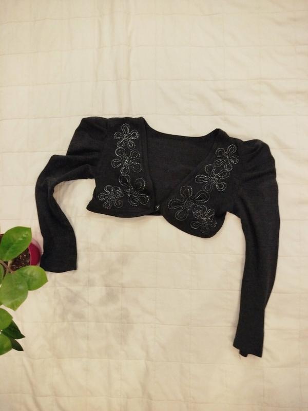 Укороченный вариант болеро. Особенности: длинный рукав-фонарик без манжета, есть застежка. Заміри на фото. За дополнительной информацией обратитесь в приват.