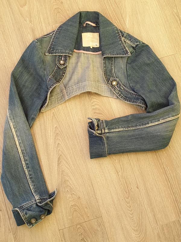Продам стильне джинсове болеро.Стан ідеальний. Розмір вказано L,але реально можна S-L. Рукав 61см +6 см відворот Довжина болеро 24.5 див.