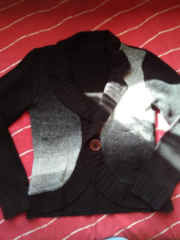 Колір омбре. Довжина по спині 54 плечі 37 ПОГ 40 в місці кріплення кишені розтягнулася петля. В шкарпетці не видно.