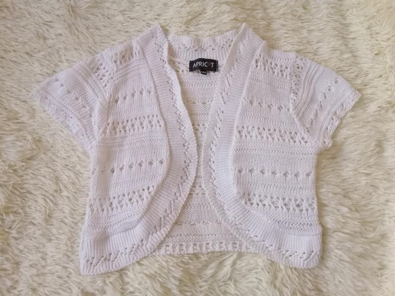 Коротка в'язана кофточка з коротким рукавом. Розмір s-m, в грудях 35см, довжина 36 см