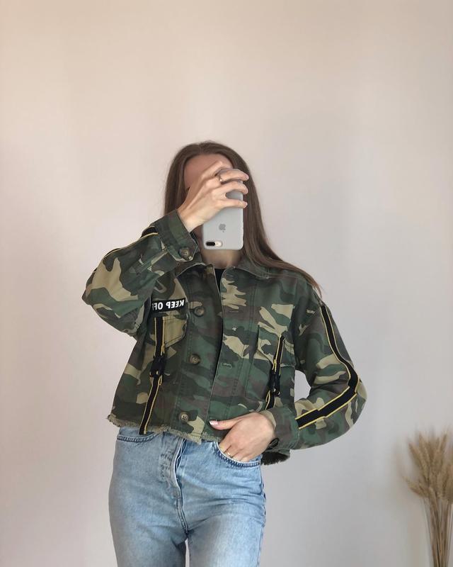 Стильна укорочена джинсовка Bershka В ідеальному стані Розмір вказано Хс,також гарно ляже на С За деталями в direct