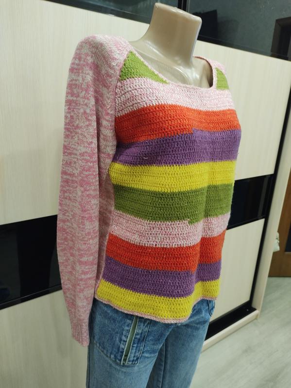 Длина изделия 55 Длина рукава от горловины 69 Под рукавами 48 Ширина по низу 48 кофточка тёплая с шерстяной нитью, стильная р. M/L 611