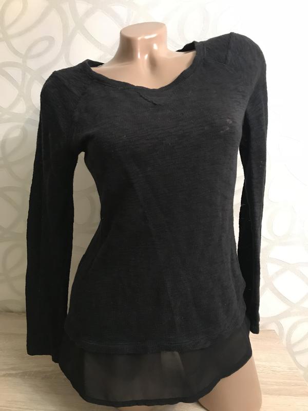 Трикотажна Кофточка з шифоном.Довжина 55 см,загальна з шифоном 63 див. Рукав реглан,Довжина від горловини 63 див. ПОГ-43 див. Розмір написаний 12,але йде на 10