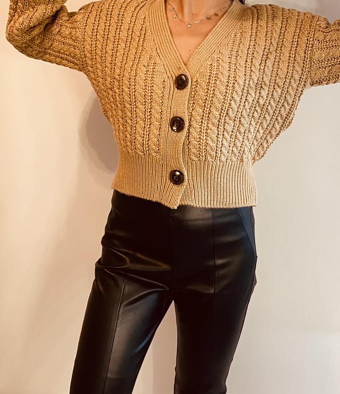 V-подібний викот довгі рукави застібка на ґудзики спереду текстурований візерунок