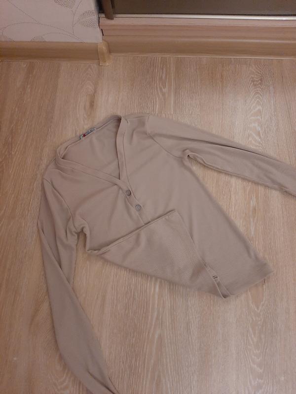 Джемпер на гудзиках у дрібний рубчик нюдового кольору. XS/S