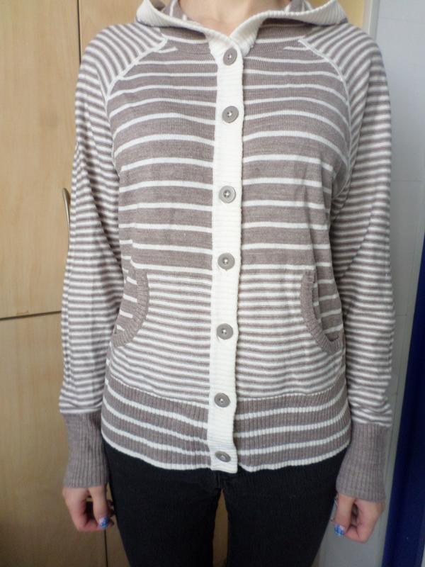 Теплая,мягкая и приятная к телу кофта с капюшоном в идеальном состоянии.Есть два глубоких кармана.Размер XL,но маломерка.На фото одета на S (Рост 165).Легко пойдет и на М.