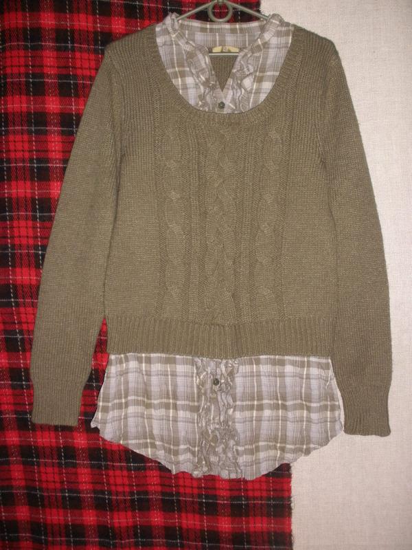 Чудесный джемпер tu c рубашкой-обманкой в клетку для высокой барышни