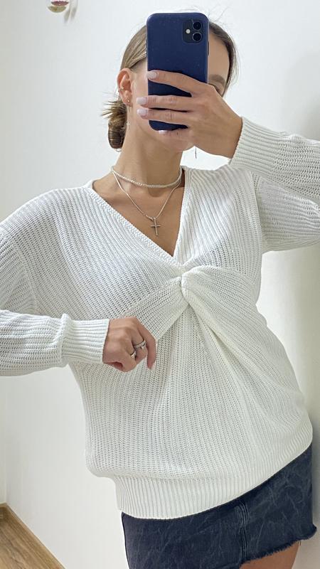 Кофта білого кольору без дефектів Розмір 38 (м) Довжина - 59 см Довжина рукава - 56 см ( спущений ) заміри від горла - 73 см Півобхгрудей- 57 см Півобхталії- 59 см Півобхбедер -50 см
