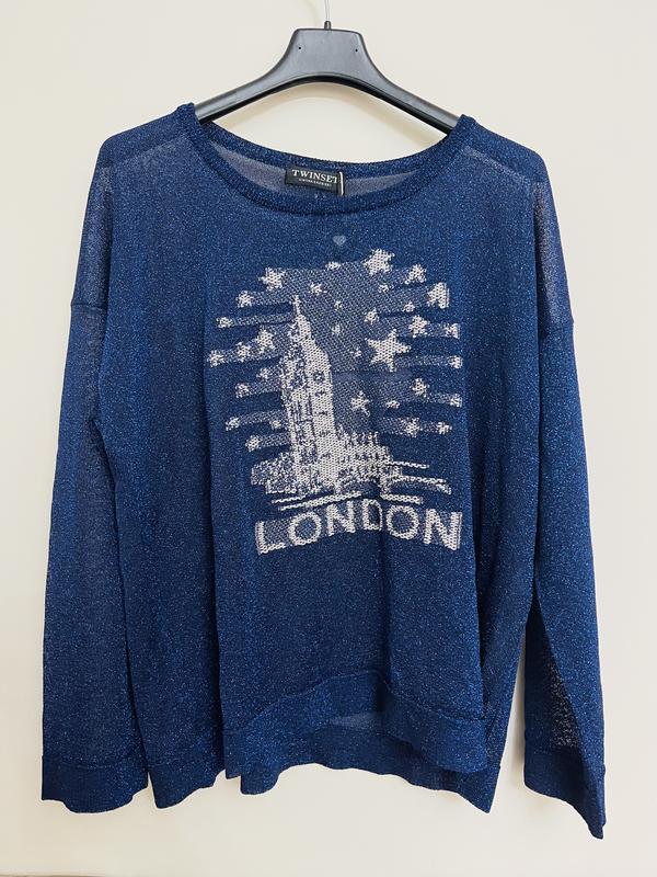 Оригінал! Шикарна кофта, светр, джемпер Twin Set Тканина з люрексом, гарно переливається на світлі Фасон оверсайз Виробництво: Італія Розмір М, через фасону чудово сяде на Л