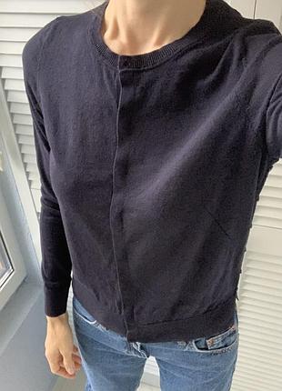 Очень нежная кофточка от Massimo Dutti. Качественный, дорогой бренд. Состояние новой. В составе: шелк, коттон и кашемир. Спереди идет на скрытых пуговицах, по бокам также пуговицы для красоты и разрезы. Цвет темно-синий. Ну очень крутая вещь, будете довольны. Смотрите также другие мою вещи, много брендовой одежды по доступным ценам.