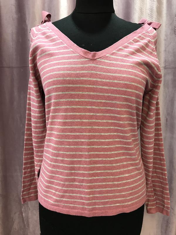 Тепленький свитерок от Yessica цвет пильная роза/серий с открытыми плечиками, бант на завязках Размер М Длина-58 см Рукав-62 см ПОГ-46 см