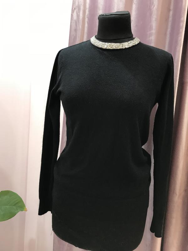 Стан нової речі, без дефектів. Мягкий не колеться Розмір С-М, колір насичений чорний Довжина 58 см ПОГ 48 см ПОТ 44 см Плечі 40 см Рукав 60 см