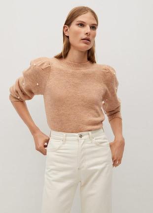 Джемпер из мягкого материала, прямого кроя. Круглый вырез горловины. Длинный рукав. Изделие декорировано бусинами. Носился несколько раз. В идеальном состоянии