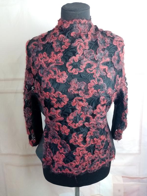 Кофта із натуральної шкіри і гіпюру В ідеальному стані дефектов нема Ног 47см Нот44см Рукав реглан 37 см рукав 3/4