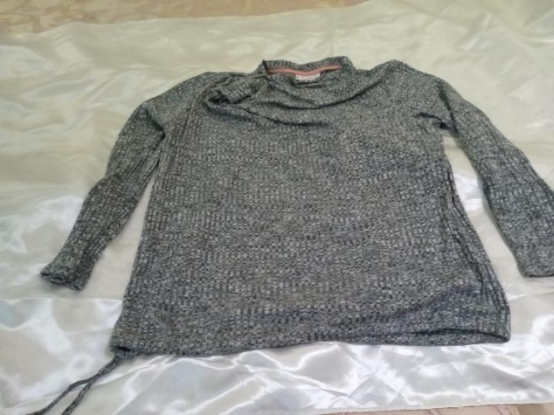 тоненький свитерок на весну,низ стягиваеться на шнурочек,справа горловина присобрана на защип