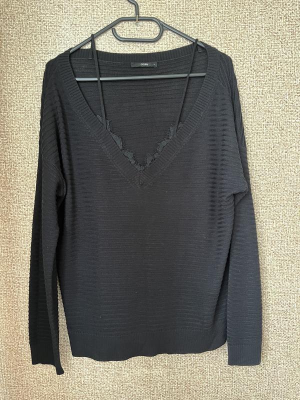 Джемпер чорного кольору, тоненький, приємний до тіла, з мереживними вставками. Стан ідеальний. Заміри: пог, пот, поб- до 58 см, довжина 59 см
