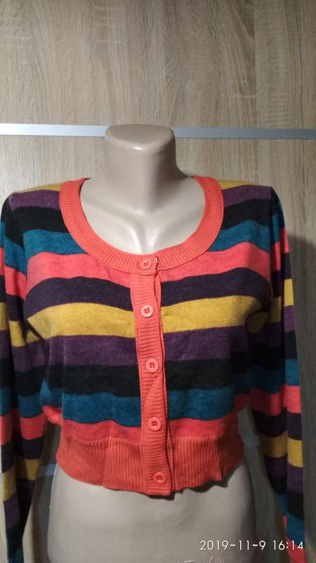 Дуже мила і тепла кофтинка, яскраві смуги Д - 41, ІН-59, ПОГ-50 Якщо є питання - звертайтеся.