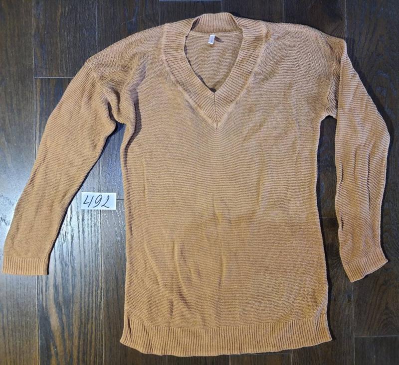 Котоновий джемпер. Найкраще колір передався на фото з ярликом. Довжина 80см, тягнеться до 115см Від плеча до плеча 61см, тягнеться до 80см Напівоб'єм грудей 51см, тягнеться до 81см Напівоб'єм по низу 48см, тягнеться до 81см