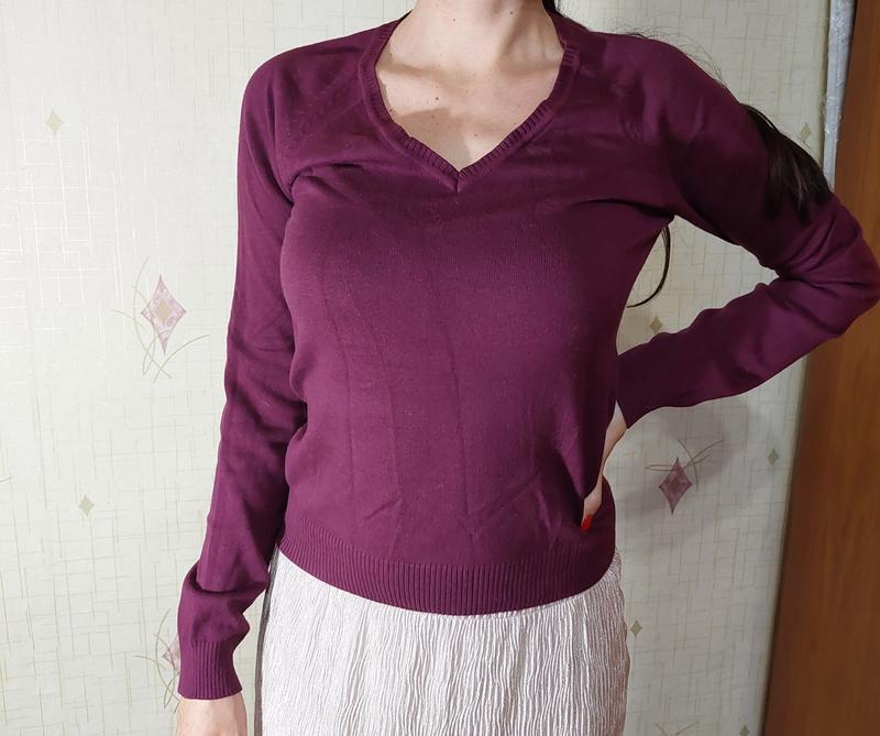 яскравий базовий светрик бузкового кольору. стан нового. Довжина виробу 55 см, ширина в грудях 45 см, талія 41 см продають речі з власного гардероба.