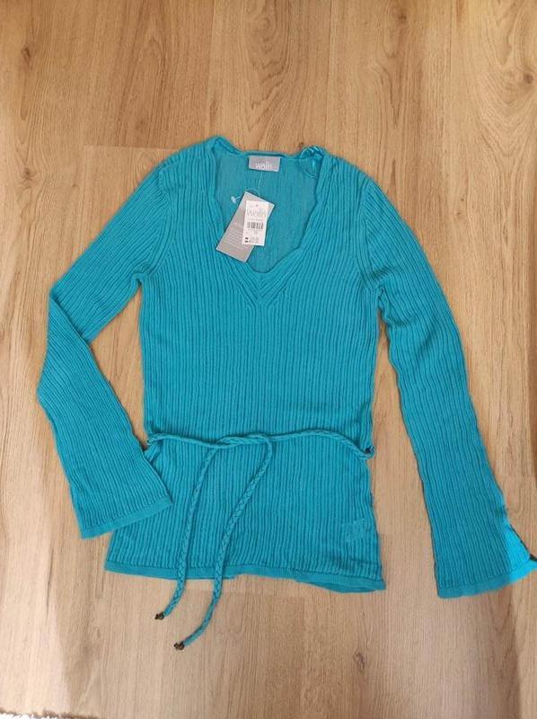Джемпер/ кофта Wallis , колір бірюзовий, колір ближче до оригіналу як на фото 2 ,трохи яскравіший,новий,, чудова якість-віскоза/котон,розмір 46,на високий зріст,заміри::плечі 37 см,довжина рукава 65 см,ПОГ 46 см,Довжина по спинці 70 см.Wallis