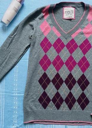 Гарний джемпер в ромби стане улюбленою річчю, добре пасує з джинсами, брючками, спідницями, підходить як під підбори, так і спортивне взуття 🥿 Розмір XS-S Довжина - 58 НОГ - 43 НОТ - 40 Рукав - 60