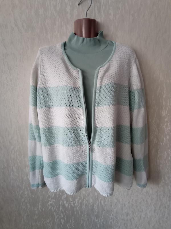 В ідеальному стані. Колір м'ятний, приглушений, тканина приємна на дотик. Блискавка металічна, міцна. Заміри: - напівобхват по грудях 56 см - напівобхват по талії 52 см - напівобхват по низу 60 см - плечі 44 см - довжина рукава 66 см - ширина рукава внизу 10 см - загальна довжина 66 см Орієнтуйтеся, будь ласка, по замірам. На всі ваші додаткові питання відповім в особистих повідомленнях. Дивіться інші мої оголошення, є багато якісних товарів по гарним цінам. Перед оформленням покупки, будь ласка, ознайомтеся із вкладкою "Про мене".