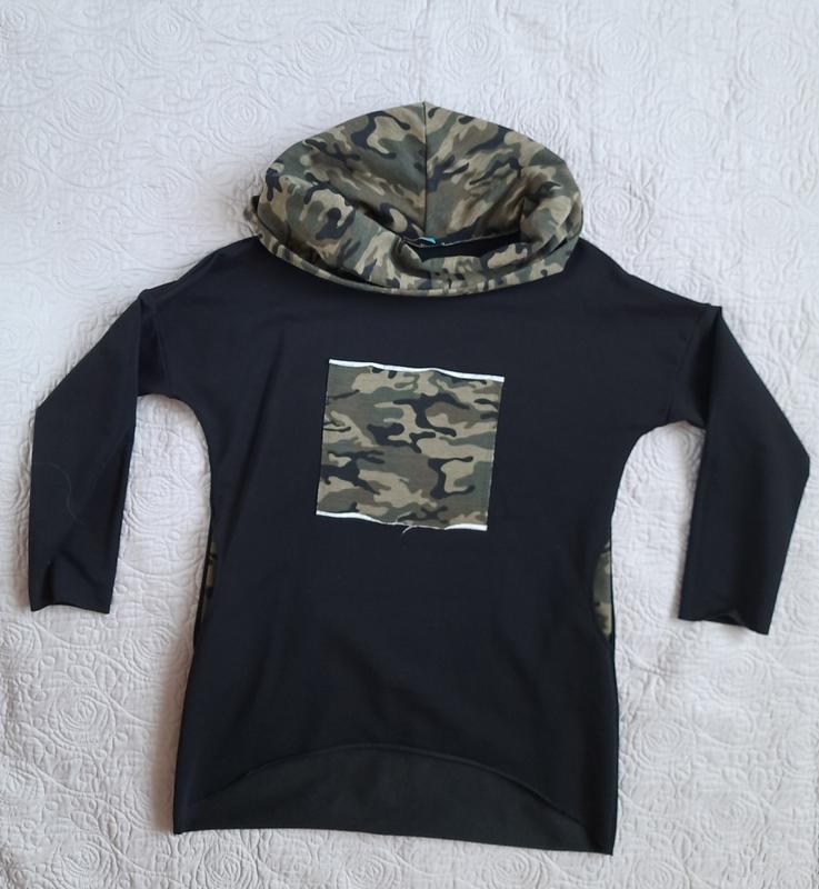 Кофта з хомутом,подовжена.Тканина двунитка.В ідеальному стані.Є кишені.