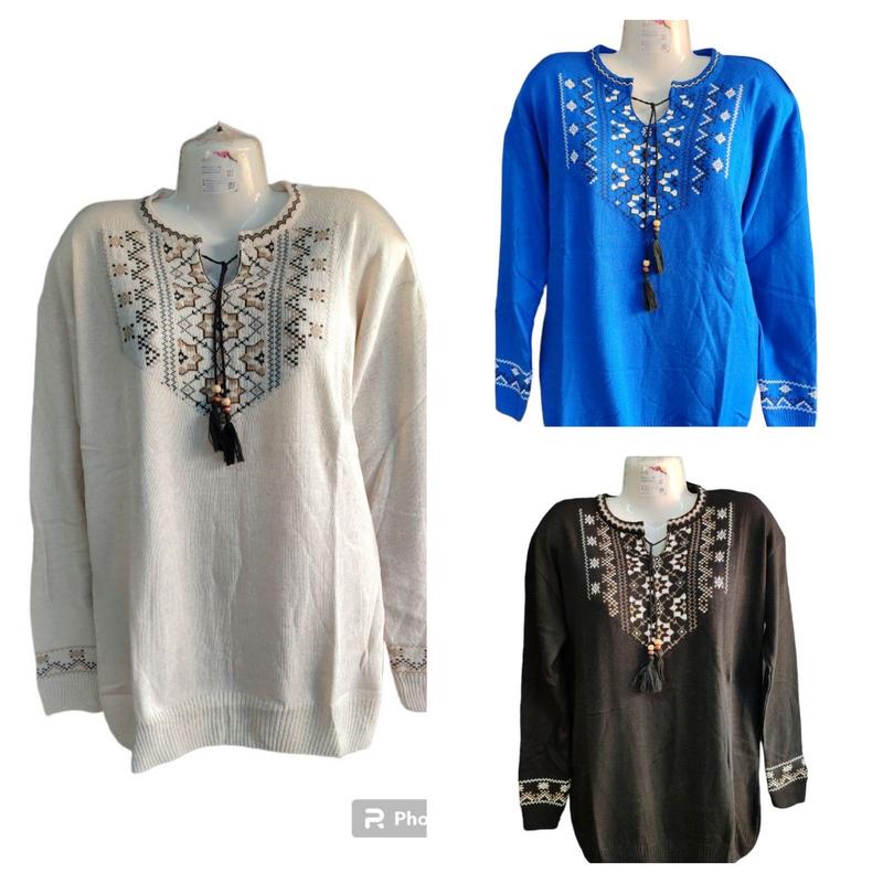 ❤️НОВИНКА ❤️ Джемпер супер- батал вишиванка🌸 🧵Тканина: вовна/акрил 30/70 ❌Розміри: універсальний (56-62рр) ❌Виміри: ПОГ: 58-60 см; довжина рукава - 64 см; довжина виробу - 66 см. 🇹🇷Виробництво: Туреччина 🌈Кольори: на фото