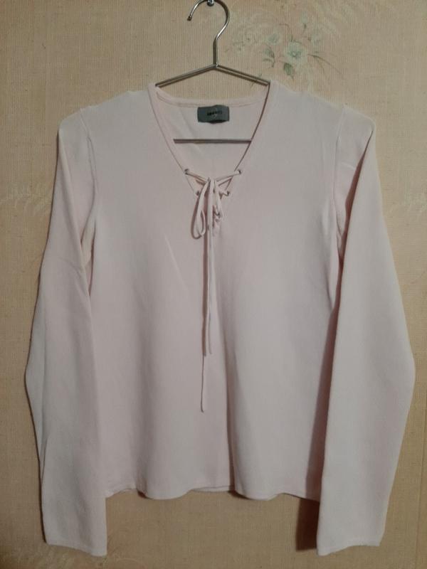 Колір пудра, на зав 'язках, на розмір М-ХL, гарно тягнеться, указаний 12 розмір, додаю заміри в спокійному стані : ПОГ - 41, а тягнеться до 63см, ПОТ - 38, рукав - 59, плечі - 33