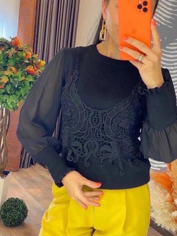 ЧАРІВНА КОФТИНКА ВІЛЬНОГО КРОЮ З КРУГЛИМ ВИРІЗОМ ,НА РЕЗИНЦІ ВГОРІ І ВНИЗУ ВИРОБУ, З ОБ'ЄМНИМИ ШИФОНОВИМИ РУКАВАМИ , ВИГОТОВЛЕНА З ЯКІСНОГО І ПРИЄМНОГО ДО ТІЛА ТРИКОТАЖУ МАШИННОЇ В'ЯЗКИ, ПРИКРАШЕНОГО ВИШУКАНИМ МЕРЕЖИВОМ З НІЖНИМ ВІЗЕРУНКОМ ВОНА ПІДКРЕСЛИТЬ ВАШУ КРАСУ, І ВІДМІННО БУДЕ ВИГЛЯДАТИ НА ДІЛОВІЙ ЗУСТРІЧІ, РОМАНТИЧНОМУ ПОБАЧЕННІ І ВЕЧІРНИКУ З ДРУЗЯМИ РОЗМІР УНІВЕРСАЛЬНИЙ 42-46 ДОВЖИНА ВИРОБУ 58-60 СМ КОД 8030 🍃 В НАЯВНОСТІ КОЛІР, ЯКИЙ НА МОДЕЛІ ☘️
