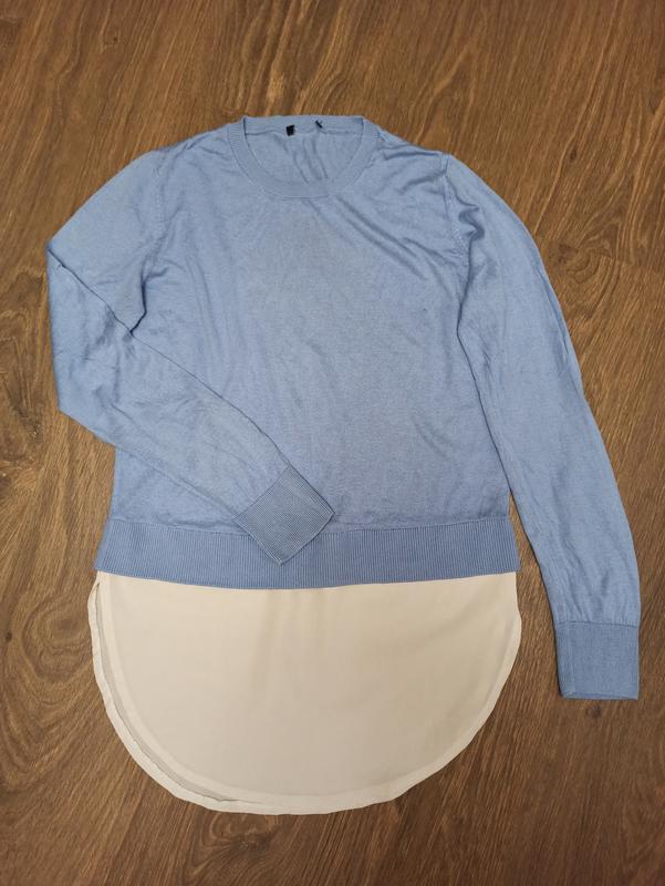 Джемпер з імітацією блузи з-під низу Розмір S/M Довжина 74 см, довжина рукава 62 см, ширина 45 см.