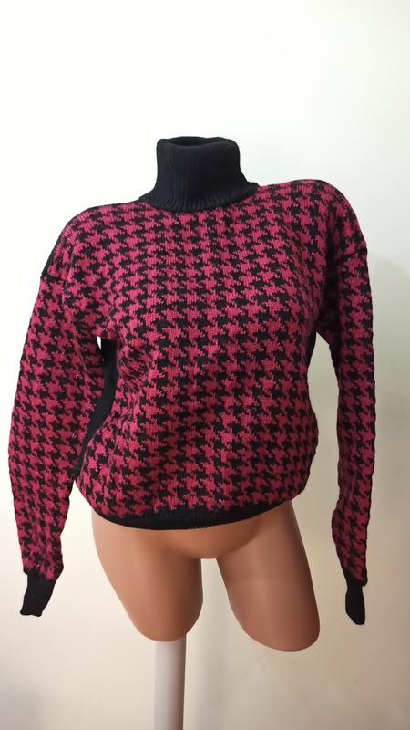 Шикарний светр в гусячу лапку стан ідеальний ☝️ в носінні мало дуже тепла спинка чорна, перед і рукави нитка бордо з люрексом ✔️Довжина 58 см, ✔️груди 55 см, ✔️рукав спущений 56 см