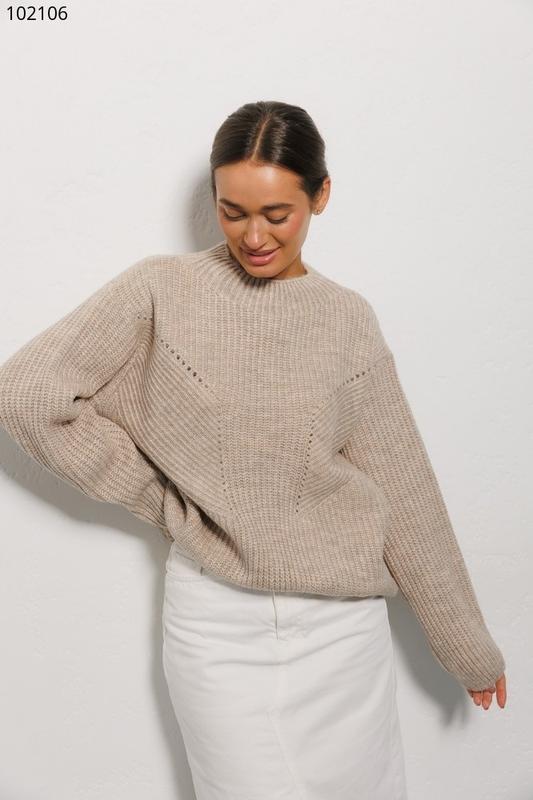 Жіночий джемпер oversize бежевий з великої в`язки